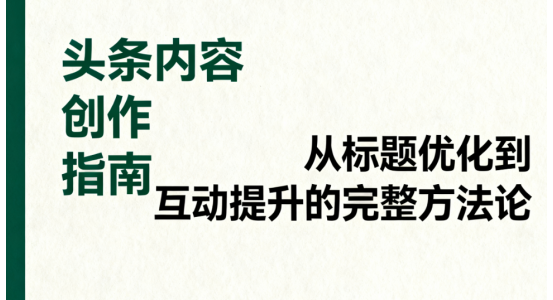 在信息爆炸的時代,頭條平臺作為內(nèi)容分發(fā)的核心陣地,如何讓優(yōu)質(zhì)內(nèi)容突圍成為創(chuàng)作者的核心課題。本文基于頭條算法邏輯與用戶行為數(shù)...